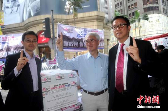 10月29日,由香港保普选反占中大联盟发起的支持警察大签名行动已经获得超过100万香港市民的支持签名,发起人之一周融(中)在一个签名街站召开记者会。周融呼吁非法“占中”人士,听从香港市民的民意,结束违法行动。中新社发谭达明摄