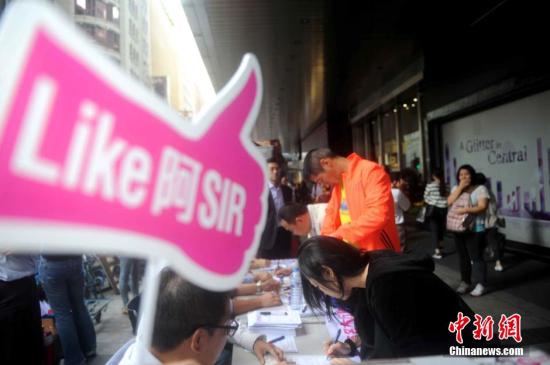 10月29日,香港有市民继续以签名的方式对“占中”者的违法行为表达愤怒,对警方执法表示支持。由香港团体“保普选反占中”大联盟发起支持警方执法,呼吁还路于民的签名活动至今有超过一百万人参与签名。中新社发谭达明摄