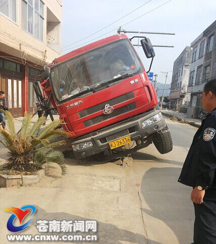 苍南新闻网11月6日消息:马站镇朝阳路389号前,车辆因不熟悉道路情况,在该处路段停车卸货,造成道路边上加固的青石板断裂,导致车辆侧翻的交通事故。交警及时赶赴现场处理,并提醒行经该处路段车辆减速慢行,注意安全。(通讯员 洪南晨)