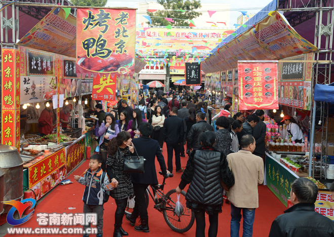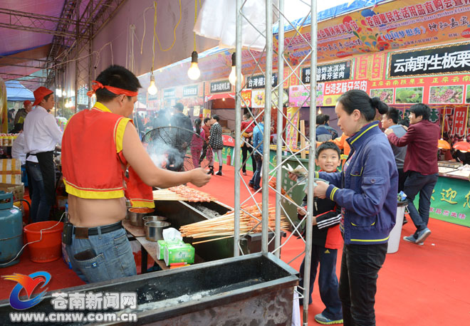苍南新闻网11月20日消息:今天,我县惠民生活用品直购会暨休闲美食节在灵溪镇人民公园广场开幕。据了解,本次活动由县商务局、供销总社主办,设57个商户展位,为期六天,至26日结束。 (许师师/摄)