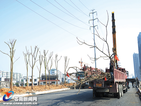 苍南新闻网12月30日消息:近日,龙港镇组织工人对世纪大道绿化带进行树木种植,着力提升世纪大道绿色景观工程建设。 (许师师/摄)