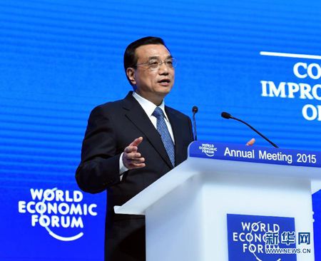 1月21日,中国国务院总理李克强在瑞士达沃斯举行的世界经济论坛全会发表特别致辞并回答提问。新华社记者饶爱民摄