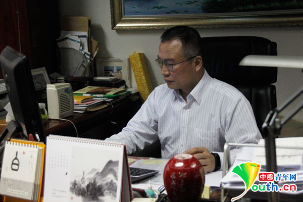 陈建国在认真办公。 中国青年网记者 曹迪摄