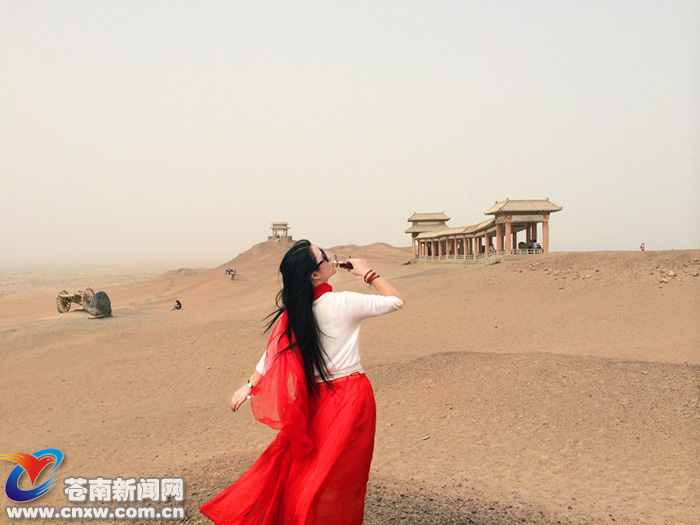 劝君更尽一杯酒。到阳关,怎可不喝酒?今天,我带上酒,带上思古的情怀,来到阳关。导游听说我带了酒,要在阳关喝一杯,诧异得差点连下巴都掉了。她说,从来没有人真的在这里喝酒。没有最好,此间天地,为我独有。看来,我算是癫狂之人。大漠长风吹起我的长发,吹起我的丝巾,吹起我的裙裾,更吹起我的豪情满怀和思古情怀。在猎猎风中,走上阳关大道,在两千年的烽火台前,邀破空长风一起,我豪迈的举杯,把一杯烈酒一饮而尽。