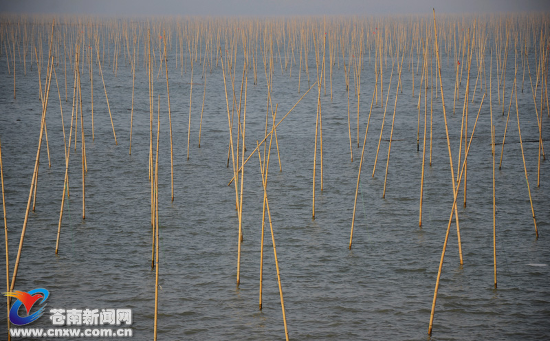 苍南新闻网4月2日消息:近日,大渔湾一年一度的紫菜养殖全面结束。随着养民架设在海上竹编的陆续上岸,海面上出现整片海上“竹林”景观,特别是夕阳西下时,整个大渔湾“竹林”在阳光微弱照射和海水反光的共同作用下,呈现出金色光芒,气势磅礴,金色如画的海湾,吸引许多群众和广大摄影爱好者前来拍摄。图为赤溪镇中墩社区的“金色竹林”(卢孔祥)