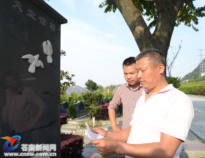 苍南新闻网4月3日消息:随着人们文明祭祖、环保清明意识的提高,更多更加文明环保、健康有益的祭祀方式逐渐出现。温州九龙生态园首创的天堂邮箱,目前已“寄”出近千封家信。而在今年的清明期间,该生态园更是独具匠心地向游客提供纸杯,以供香烛插放,起到保护绿色植被和减少环境污染的作用。“在今年,擦拭墓碑的抹布和水桶等用具我们也免费提供,主要是为了让大家过一个文明、绿色、环保的清明”。该园负责人说道。(许师师/摄)