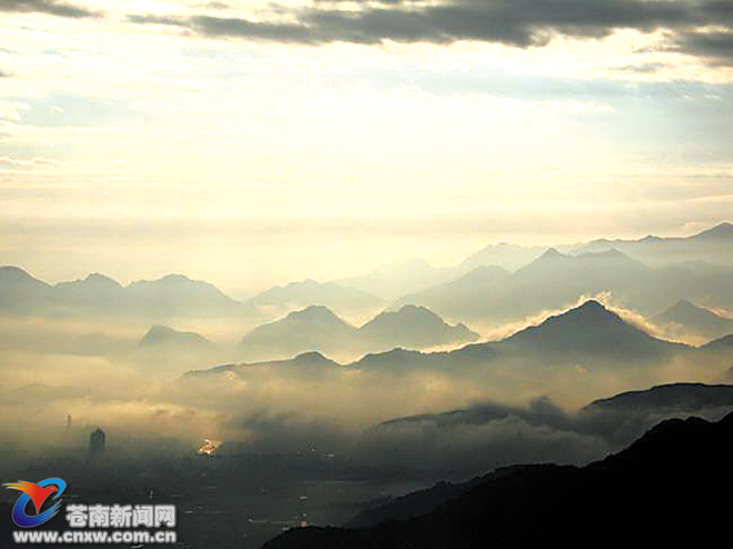 黄昏,夕照依山,日暮下的玉苍山,披上了金色的霞光,她努力地挽留着渐渐淡去的一缕残美,送别了归去的人们。