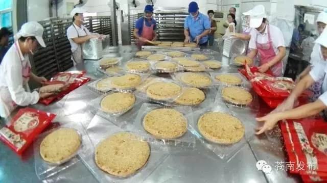 从配料开始,经过擀面皮、包馅心,到粗具雏形,再到打芝麻,烘烤等程序,热乎乎的月饼便新鲜出炉了。拿起一块,入口味香脆酥,油而不腻,甜而不咸,再细细品尝,唇齿留香,回味无穷。