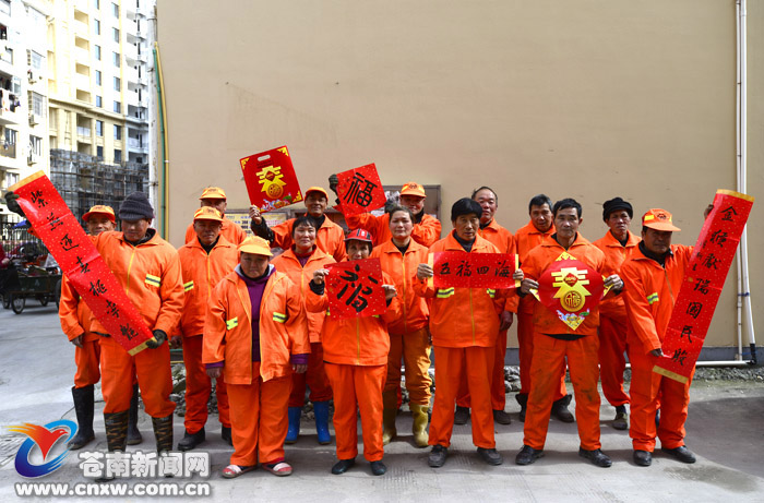 连日来,社会各界纷纷向环卫工人献爱心,让他们感受到社会大家庭的温暖。今天,他们用这种特殊的方式感谢人们的关怀,也祝大家过好文明祥和的新春佳节。(李士明 蒋文胜)