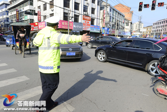 苍南新闻网2月5日消息:今天中午,县城城中路与建兴路交叉路口,几位交警正忙着在指挥交通。春节临近,县城街道堵车现象十分严重,交警忙得不可开交,每天上路执勤时间比平时多四个小时以上,内勤人员也到路面维护秩序。