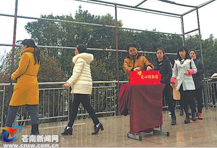 苍南新闻网3月29日消息:日前,矾山镇第一小学开展学雷锋献爱心活动,全校师生800多人集中大操场向爱心箱依次投入爱心款.据统计,当天共捐2万多元,帮助群众解困。 (邱新福/摄)