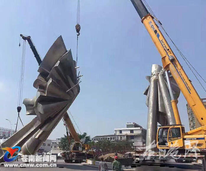 龙港大桥南端景观雕塑迁移