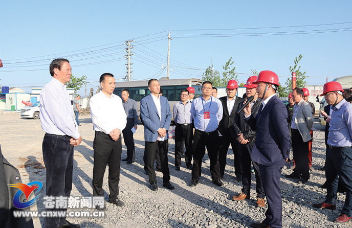 市政协主席余梅生率市政协督查组一行到我县就营商环境建设开展专项集体民主监督。图为余梅生一行视察新安鉴桥小微园建设工作开展情况,听取企业对营商环境建设的建议。(钱库镇 郑小拉)