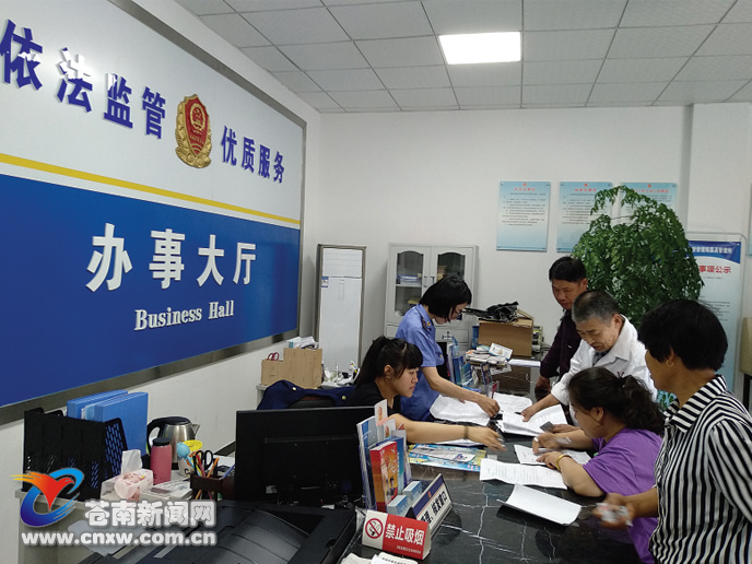 县市场监管局藻溪所为农贸市场经营户开辟“阳光通道”,集中办理营业执照,经营户只需填写租赁协议、场地证明并提供本人身份证复印件即可。短短两天,该所就为农贸市场30多家经营户办理营业执照,并发放给经营户,真正实现了“最多跑一次”。图为该所窗口工作人员耐心为经营户讲解如何填写表格。(藻溪镇 林文锋)