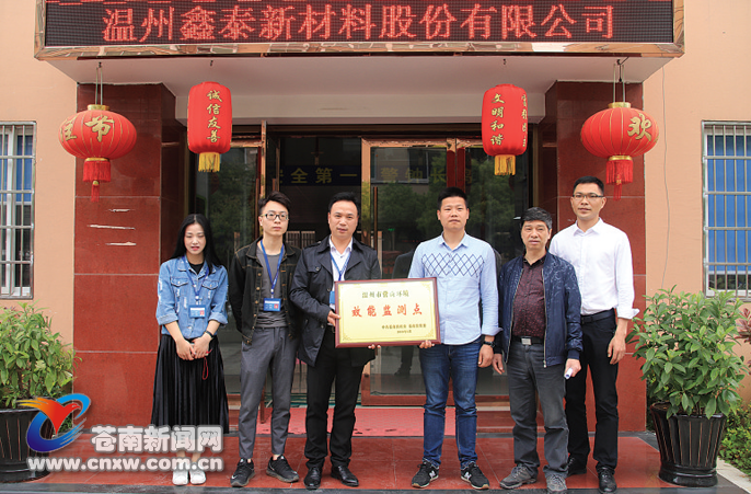 效能监测点由县纪委、县监委统一设立和管理,旨在优化营商环境,让企业吃下提升涉企服务的“定心丸”。图为宜山镇纪委为温州鑫泰新材料股份有限公司送去营商环境效能监测点牌子。(宜山镇 周爱玲)
