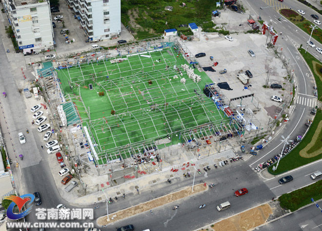 本 周,世界杯比赛将迎来收官阶段,剩余比赛仅为四场,近一个月的赛事,让世界各地都无法抗拒它的存在。不巧的是,恰逢“玛莉亚”来袭,世界杯虽然四年一次, 但还是比不上安全重要。图为县城一处世界杯观赛点,工人们正在转移各种设备、拆除广告布、禁固棚架等,提前做好防台准备。(记者 唐文僖)