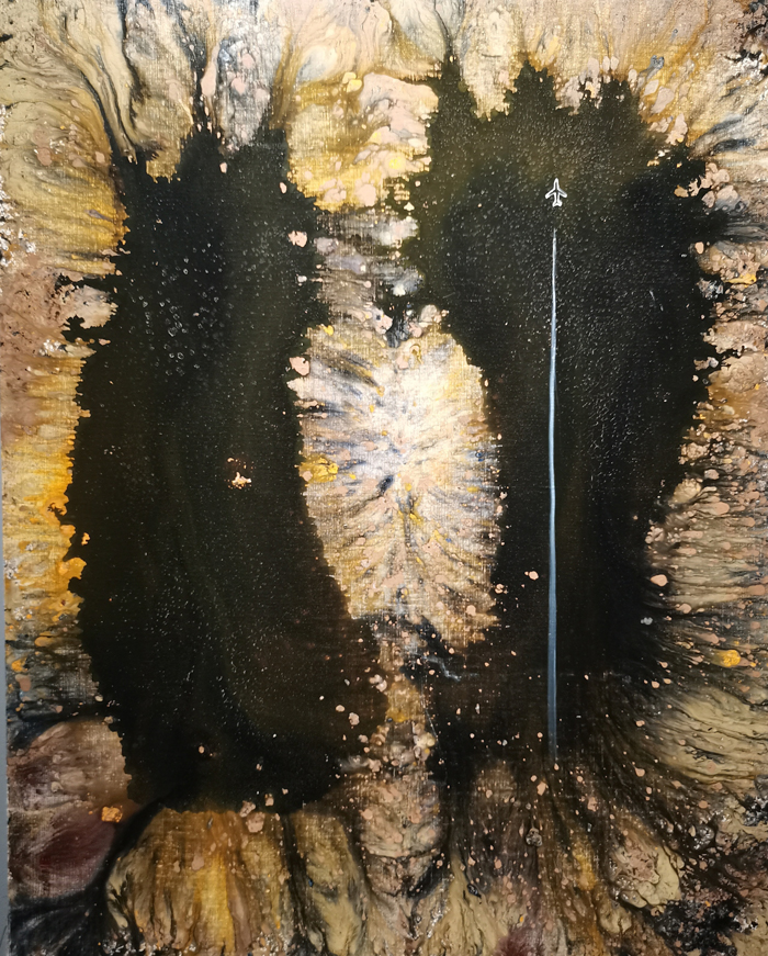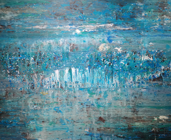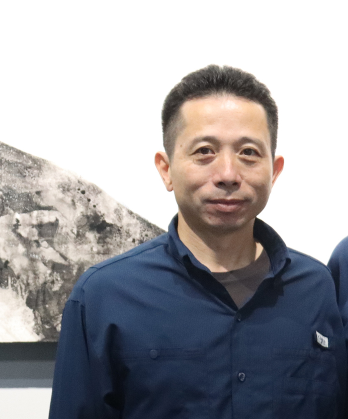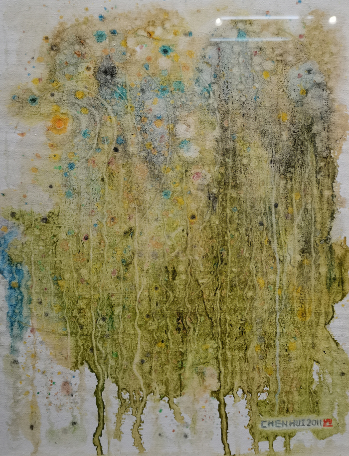 尘灰,原名陈晖,1992年毕业于集美大学,2012年~2013年在中央美术学院和中国石齐艺术研究会研修;2014年和2016年分别在德国柏林和美国加州艺术驻留;目前是北京石齐画院特聘画家,作品曾多次参加各种重要展览,并被国内外藏家及美术馆收藏。他于2016年10月来华阳十字路村“入驻”,现已近5年。他说爱上了这里的空气,这里的水,这里的自然,并把近期创作的作品集中起来展览。这次展览的作品有油画、水墨画等。作品注重于当下性、偶发性、随机性的表达以及创作痕迹的保留。在绘画上,偏写意、偏抽象,并在影像、观念以及装置方向上进行探索与实验。