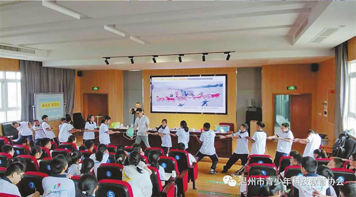 @科协@今日苍南 日前,由市科协、市教育局共同开展的“红色百年路科普万里行”活动走进灵溪镇第二中学,为该校七年级学生带来《科学有形创意无限》的精彩课程,培养学生学习科学的兴趣,提升学生的科学素养。图为学生们在体验现代版马德堡半球实验,感受大气压的威力。