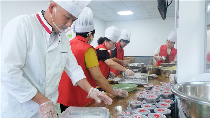 “现在政府福利真好啊,不用自己做饭,饭菜都是准备好送过来给我们吃,每天都能吃到热菜热饭。”在领到志愿者送来的盒饭后,老人陈荣建脸上挂满笑容。老人今年70多岁,是村里的独居老人,因年纪渐长,行动不便,每天做饭、吃饭成为难题。今年6月,随着“耆老幸福食堂”正式启用,老人每天11时左右,就会在家门口收到食堂统一备餐送来的饭菜,切实为老人解决日常吃饭难问题。