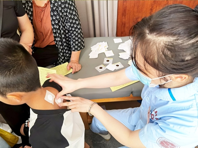 @李士明:@今日苍南 又是一年三伏天。昨日,不少群众到县中医院针灸推拿科贴敷三伏贴。据了解,“三伏贴”是我国传统医学中的特色疗法,也是冬病夏治的一种简单、方便、价廉、效优的中医外治法,将辛香走窜的药物通过贴敷穴位,就可通过经络传到脏腑,从而起到打通经络调整脏腑,温阳散寒的作用。