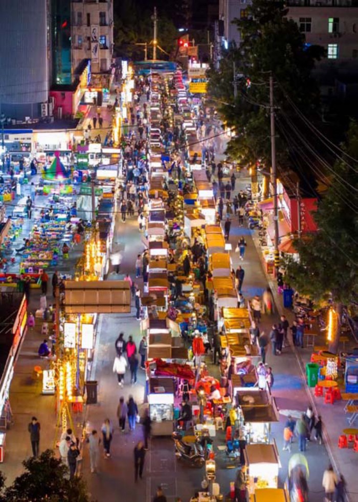 走进公园山特色街会发现,这里引进了多个中华老字号、省级老字号及连锁品牌店铺,汇聚各类特色小吃,形成多元美食聚集地。公园山夜市灯火璀璨,霓虹灯闪烁、指示牌醒目、网红标语亮眼、个性装饰多样,各类视觉元素应有尽有,年人流量高达500万人次。