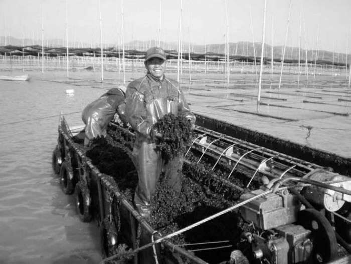 然而,就是这样一片养育了几代人的海湾,却在二十一世纪初陷入了生态危机。水质恶化、紫菜出现大规模“烂菜”,产量连年下降,一直到2014年,紫菜种植面积萎缩到了三千亩,许多渔民被迫放弃种植紫菜,到外地谋生。