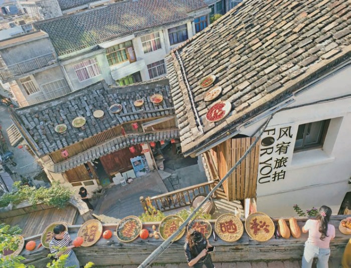 苍南新闻网2025年11月19日消息:近日,一场别具风情的渔港“晒秋”活动在霞关镇举行,许多家长趁着秋假带孩子前来领略秋日美景。登高远眺,霞关老街的屋顶铺展出一幅幅以秋为主题的丰收画卷,与远处的山海相映成趣。红辣椒、金玉米、橙南瓜点缀于黛瓦之间,勾勒出霞关独有的“晒秋”民俗画卷。据了解,作为省级5A级景区镇的霞关镇,不仅有令人流连的美景,更有地道特色美食,让游客一饱眼福与口福。(盛华 裕良/文 士明/摄)