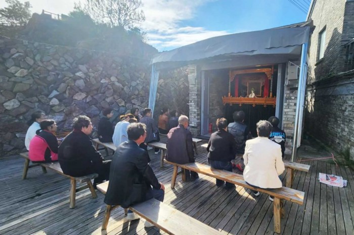 @小矾:@今日苍南 近日,矾山镇福德湾居文化家园开展非遗展演活动——单档布袋戏演出,丰富了群众精神文化生活。为进一步拉近传统艺术与群众的距离,表演间隙特别设置了互动体验环节。传承人热情邀请居民上台尝试木偶操控,手把手耐心指导基本技巧,让大家直观领略非遗文化的精妙之处,也让布袋戏这一古老艺术在互动体验中得以活态传承。