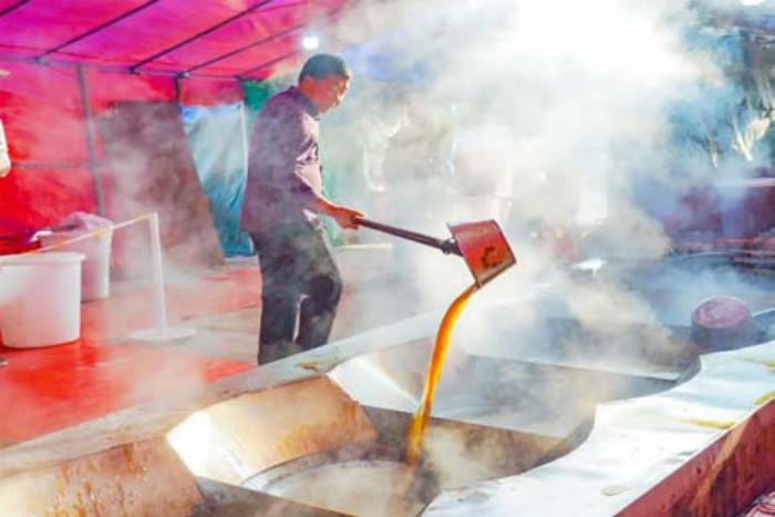 @灵宣:@今日苍南 “咕嘟……咕嘟……”随着青绿色的甘蔗汁在七口大锅中翻滚起泡,一股沁人心脾的焦糖香气弥漫开来。近日,走进灵溪镇过港自然村,空气中浸润的甜香宣告着一年一度的红糖生产季正式开锅。在苍南志成种植合作社的“甜蜜工坊”里,传承百年的“七星灶”再次点燃,熬制出属于这个季节最醇厚的丰收喜悦。