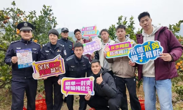 @平苍:@今日苍南 日前,望里镇一果园邀请浙BA球员举办签售活动,助力当地脐橙销售。望里派出所巧妙借助这一人气汇聚的良机,联合球员共同开展一场趣味盎然的反诈宣传,吸引大量群众尤其是青少年和家长参与,为助农活动增添一抹独特的平安“警”色,实现平安守护与民生服务的有机结合。